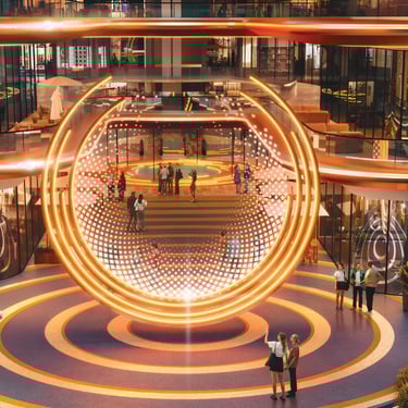Inspired by Jacob & Co.’s legendary timepieces, its radiant façade captures the rhythm of light and precision — transforming architecture into art.