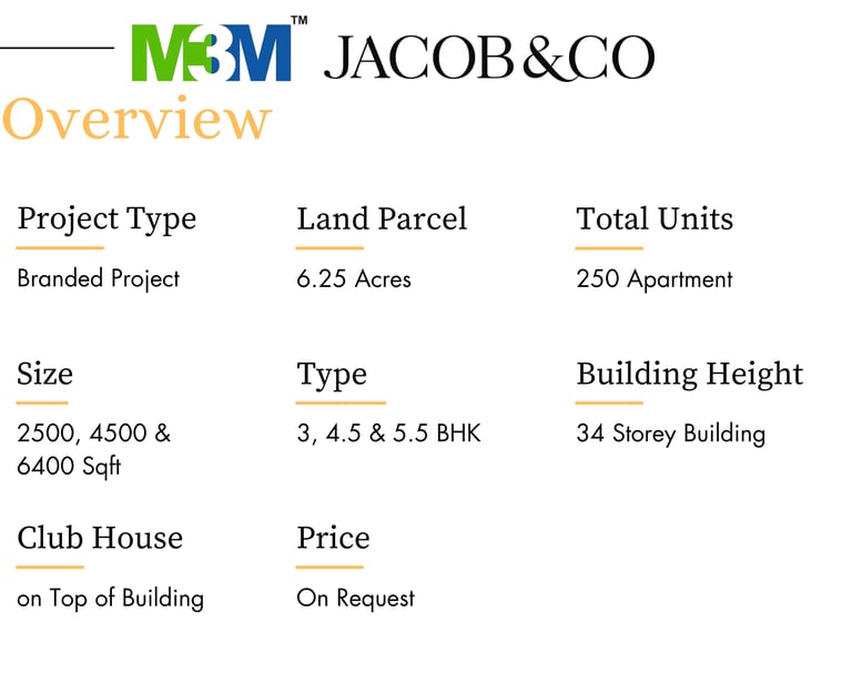 With concierge services, private club privileges, and a community of discerning achievers, Jacob & Co. Residences by M3M is where global legacy meets modern Indian luxury — seamlessly, elegantly, and exceptionally.